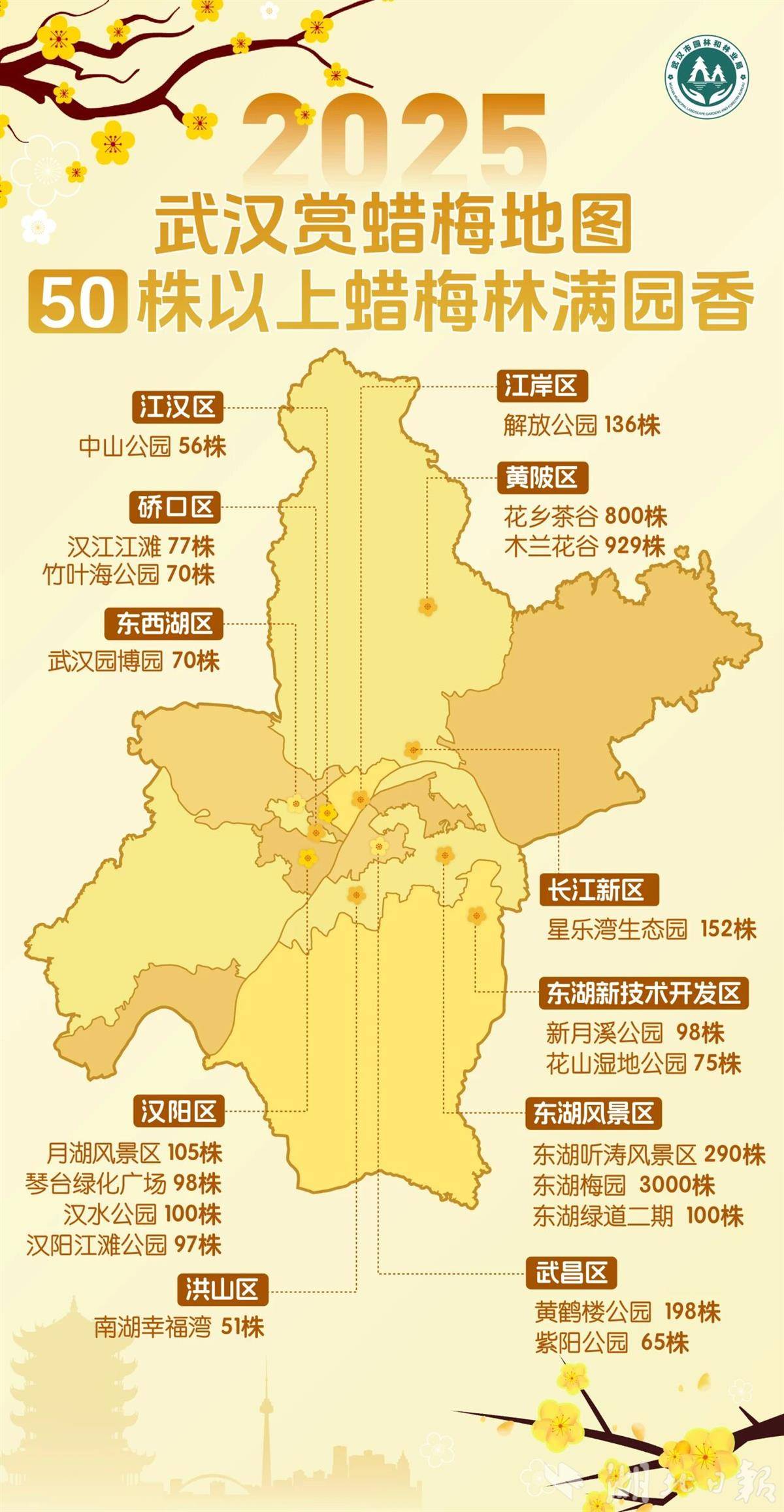 配合花期提前,“武汉蜡梅赏花地图”近日同步上线。地图集成观赏点位、品种特色、花期预告与出行指南,方便市民游客规划“追香之旅”。