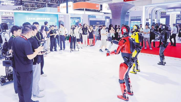 “光子”人形机器人表演太极,吸引大量观众围观。 (省贸促会供图)