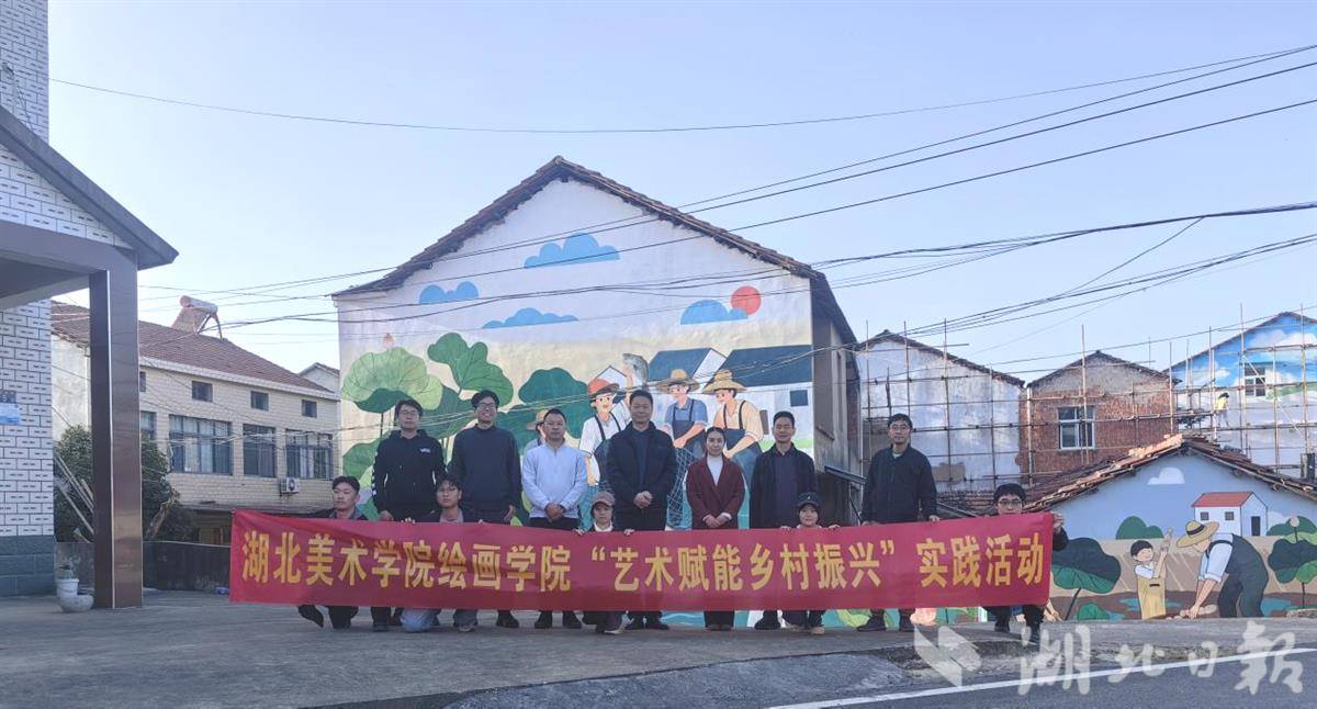 湖北日报讯(记者海冰)近日,湖北美术学院绘画学院壁画系“美遇·壁行”志愿服务队走进武汉市江夏区金口街道,开展以“艺术赋能乡村文明建设”为主题的志愿服务活动。陈石师生团队深入金水社区与艾岭村,累计绘制约750平方米主题墙绘,将专业创作融入乡村文明建设,将优质文化资源送达基层、惠及群众。