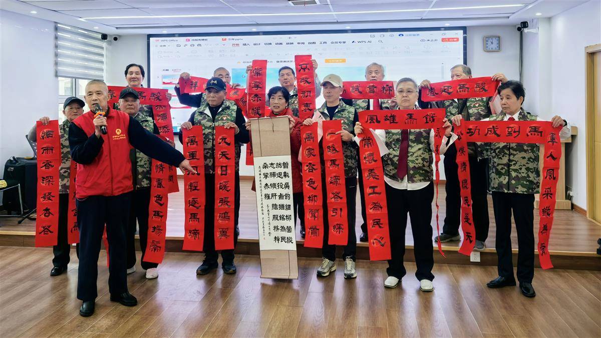 社区书法家现场为退役军人书写字画和对联,增添文化气息。