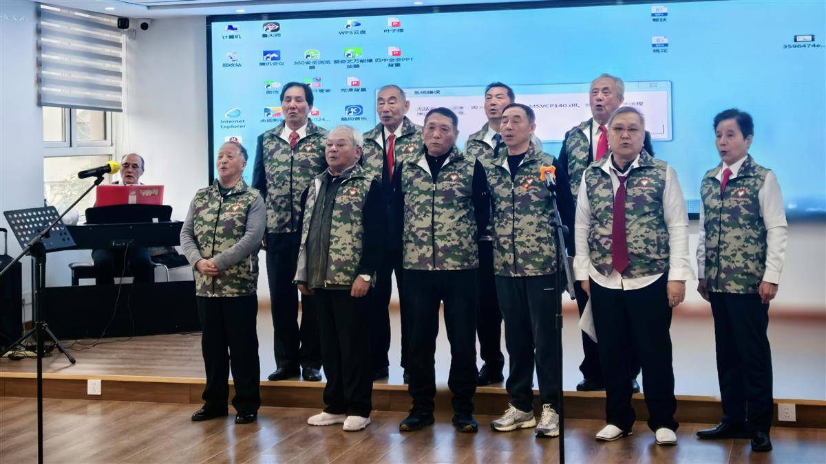 社区合唱团和居民们携手献上《绿色军衣》、《军人本色》等军旅节目。
