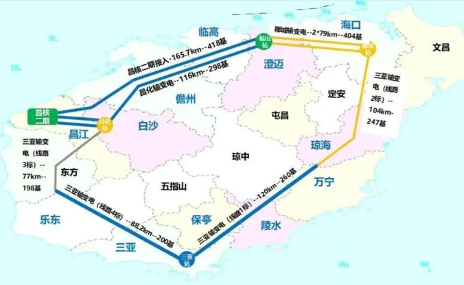 海南500千伏主网架工程是我国首个实现数字技术在全省范围主网架集成应用的电网工程。该工程包括椰城(海口东)输变电新建工程、昌化(西部)输变电新建工程、三亚输变电新建工程和昌江核电二期接入系统工程4个工程,即新建3座500千伏变电站和838千米500千伏输电线路。