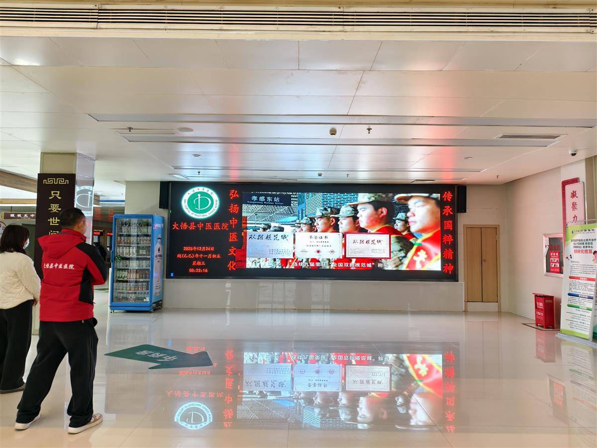 大悟县中医院播放征兵宣传视频。