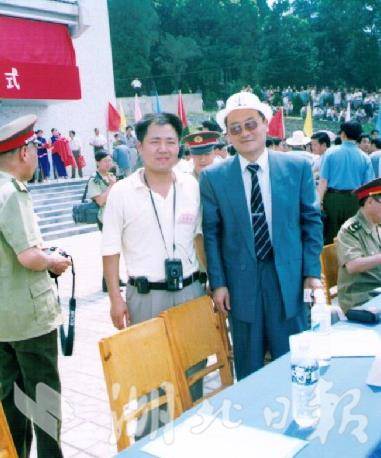 合影图片上这位身材高大、面容慈祥的长者,就是1992年6月22日新华社播发李先念主席逝世讣告和李先念主席生平的作者,国务院外办原副主任、李先念主席秘书程振声。1996年6月29日下午,我在红安县委客室采访了他。时年61岁的程老那次是随李主席夫人林佳楣在武汉参加中原突围胜利50周年纪念活动后来到红安的,这是程老第四次来红安。