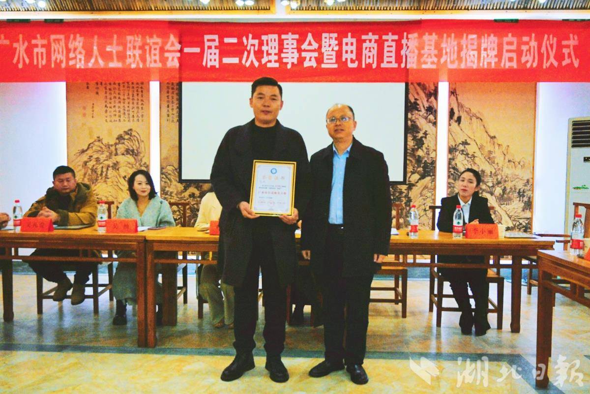 湖北日报讯(通讯员刘小斌、敖博 )12月23日,广水市网络人士联谊会(以下简称“网联会”)召开一届二次理事会议,并同步举行共青团支部授牌及电商直播基地揭牌仪式。