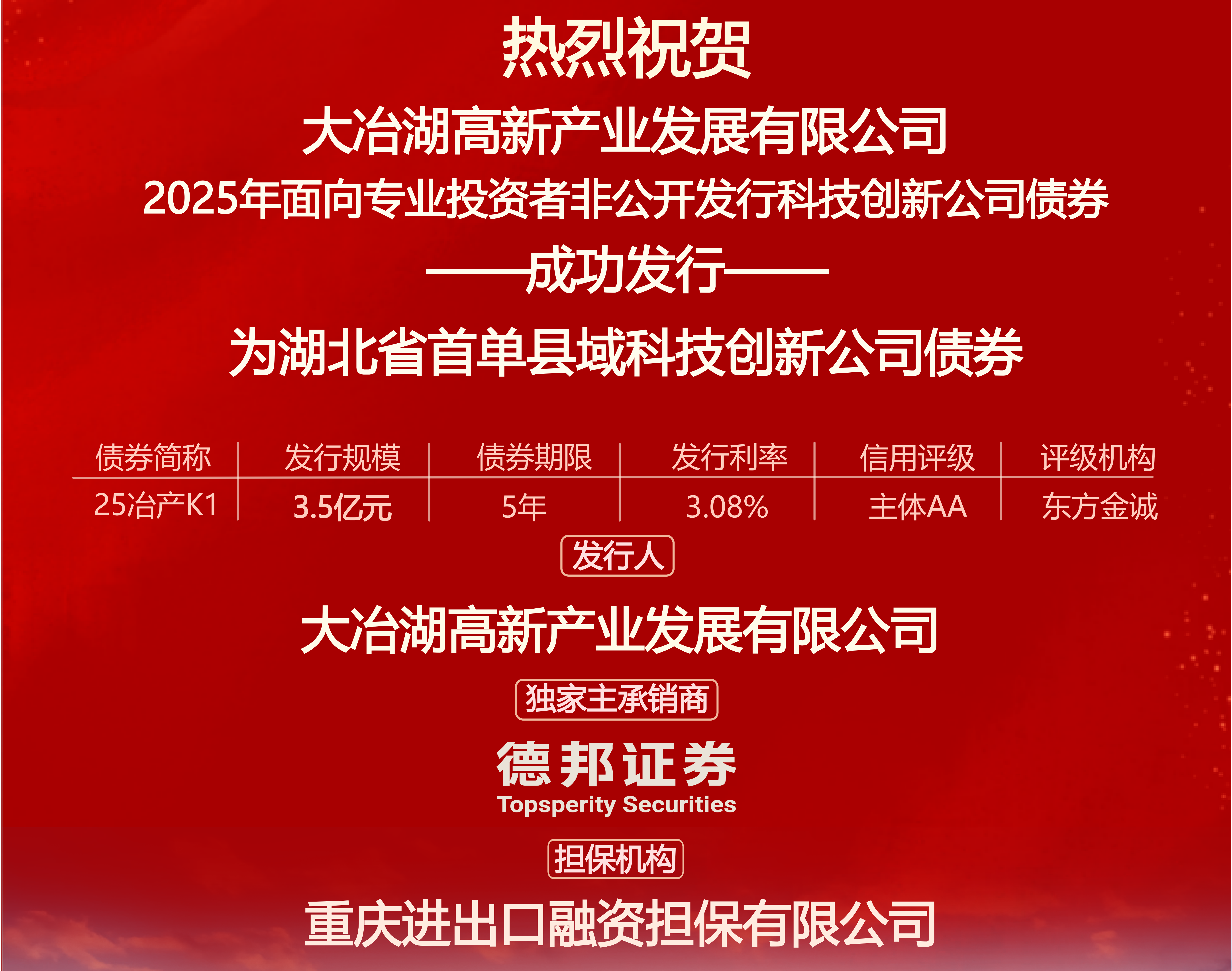 作为省内首单由县域产业投资平台发行的科创公司债券,其成功落地具有开创性意义,既体现了资本市场对大冶市发展前景的认可,也标志着当地国企市场化转型取得关键突破。