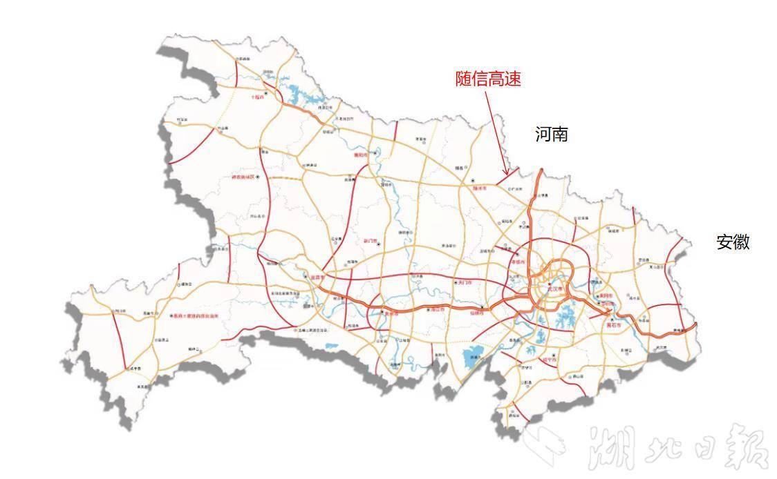 这条高速公路全长45公里,总投资60.27亿元,也和麻安高速互联互通,由随州市马坪镇中转,这意味着襄阳、黄冈等地的车辆不下高速可上随信高速。驱车一路向北,两边树木五彩斑斓、层林尽染。纵贯鄂豫两省的随信高速如巨龙般穿行在曾随文化走廊,经广水市关庙镇、蔡河镇等最后抵达鄂豫省界。