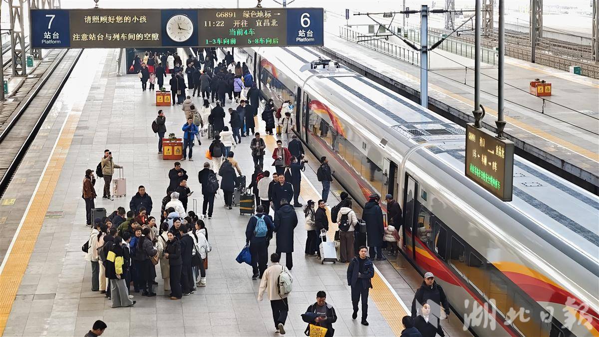从武汉开往宜昌的G6891次列车车票售罄,站台围满体验乘客。