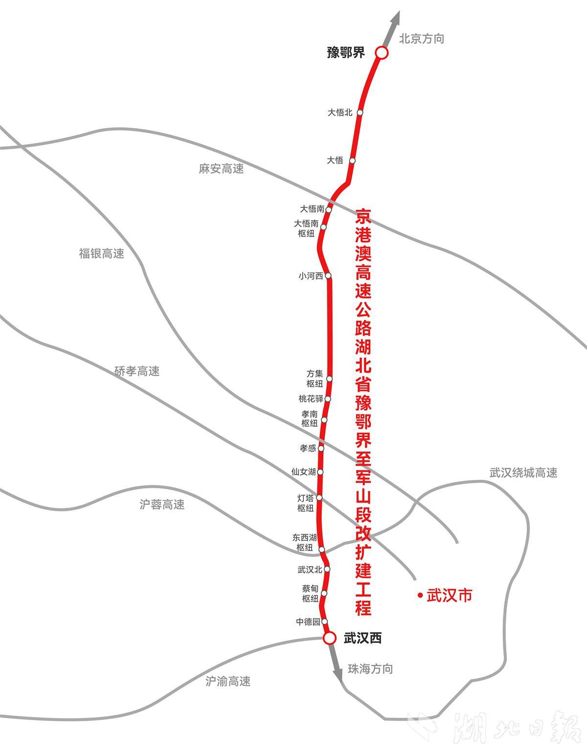 京港澳湖北北段改扩建工程建成后,将激活武汉都市圈与长江中游城市群的联动效应,强化中部地区与京津冀、粤港澳大湾区的经济交流,助力湖北“十五五”高质量发展。