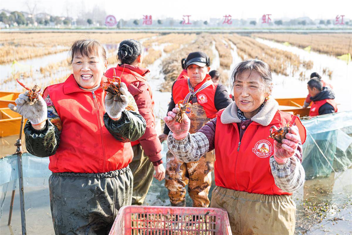 冬捕现场,虾农们争相提笼起虾,脸上满是丰收的喜悦。“现在3到5钱的虾,一斤能卖20多元。”郑家湖村养殖户刘军涛承包500亩虾稻田,推行“早稻+冬虾+早春虾”循环模式,实现“一田三收”。相比以往单季养殖,仅冬虾一季每亩就能增收约2000元。