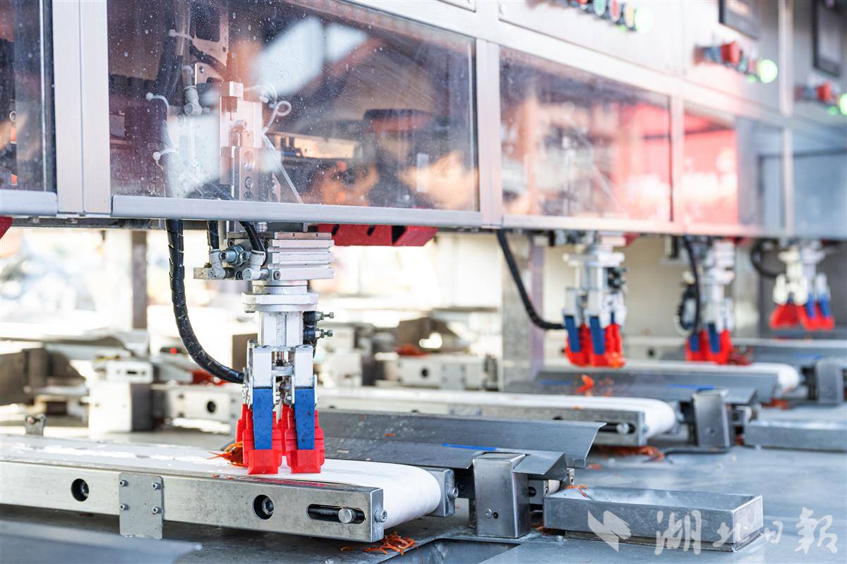 睿峰智控创始人刘敏介绍,这台剥虾机器人成品率达98%,超越熟练工水平。单台设备可替代约18名工人,大幅降低综合成本,并提升产品新鲜度与品质稳定性。(湖北日报全媒记者 任勇 摄)