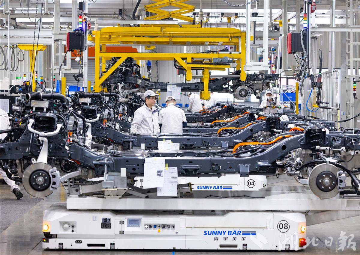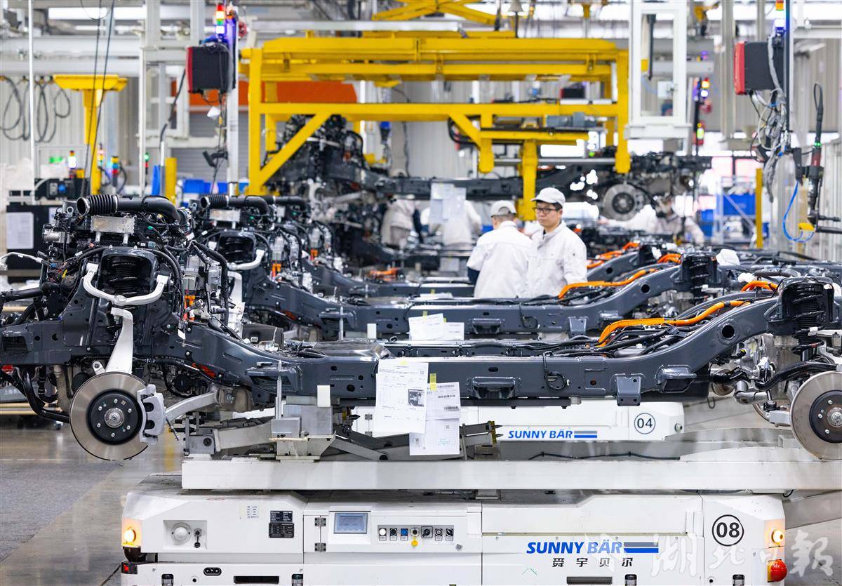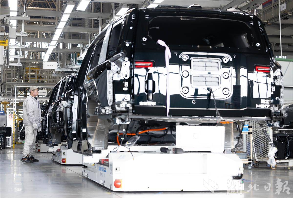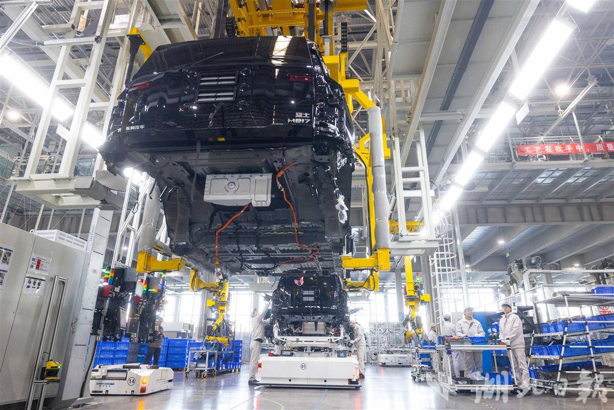 12月26日,东风猛士科技园,工作人员正在加紧赶制订单,东风猛士M817第10000辆整车下线。猛士科技是中国首个豪华电动越野品牌。自成立以来,猛士科技先后推出国内首款豪华电动越野SUV猛士917、豪华智能越野SUV猛士M817,成功填补了中国品牌在豪华新能源越野市场的空白。2025年,豪华电动越野品牌东风猛士的销量增长近3倍。(湖北日报全媒记者 薛婷 摄)