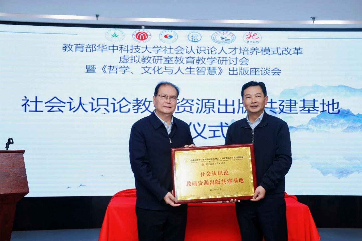 当日,“社会认识论教研资源出版共建基地”揭牌,该基地依托华中科技大学出版社的优质出版资源与虚拟教研室的跨校协同优势,旨在推动哲学及相关领域教学科研资源的共建共享、协同创新。