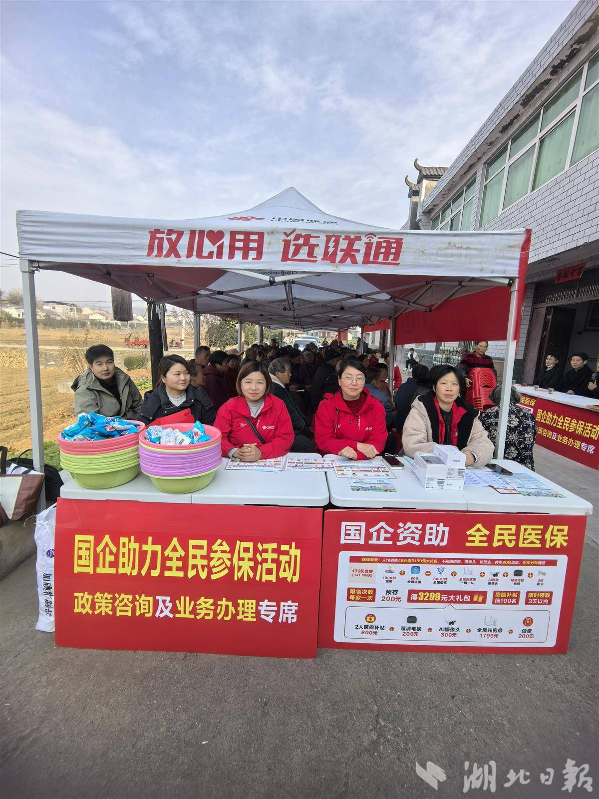 十堰联通一方面在各村委会搭建“医保政策咨询服务站”,面对面解答缴费标准、报销流程、待遇享受等村民关切问题;另一方面,组建专项宣传小组,与村委干部“结对子”,挨家挨户作宣讲。