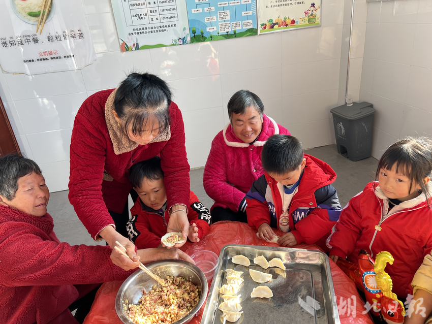 当热气腾腾的饺子端上桌,“年味尝出来”团圆用餐环节在一片欢声笑语中展开。孩子们与家长、老师一起品尝亲手制作的饺子,分享着包饺子时的趣事,食堂里香气四溢,洋溢着温暖与满足。活动最后,全体师幼和家长手持福字与花灯,共同合影留念。镜头定格下一张张灿烂的笑脸,也为这场温馨的新年团聚留下了美好的记忆。