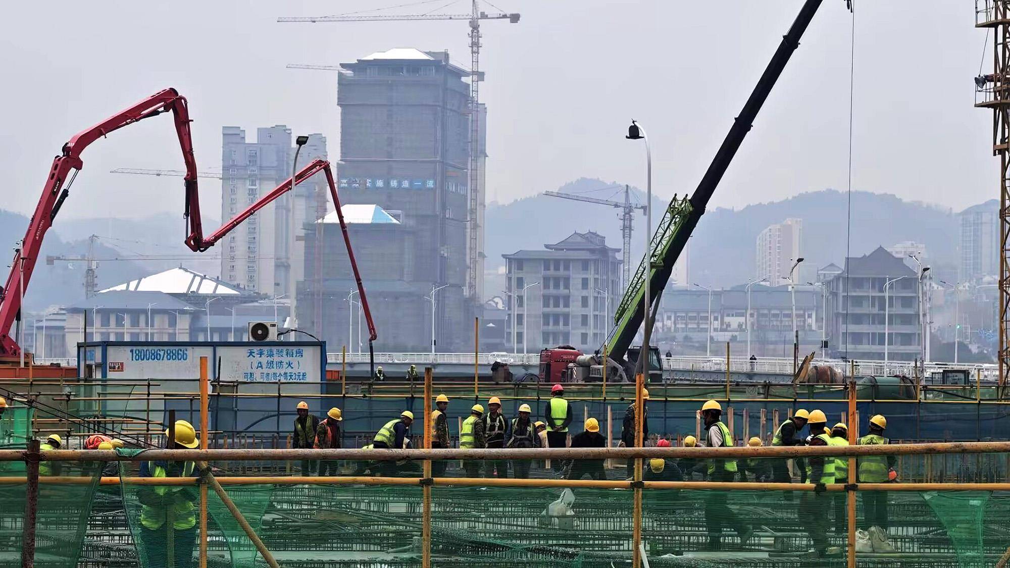 湖北日报讯(通讯员许光泽、袁树林)12月26日,位于丹江口大坝下游汉江岸边的临江公园建设工地一派热火朝天的繁忙景象。塔吊高耸转动,工程车辆往来穿梭、轰鸣声此起彼伏,挖掘机挥舞铁臂将深挖的泥土和建筑垃圾装车转运,一辆辆大货车满载渣土驶向指定消纳场地,建筑工人们各司其职、干劲十足,全力推进项目建设。