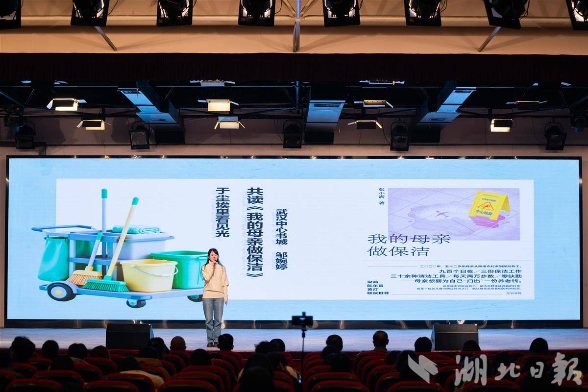 选手们的分享涵盖文学经典、历史文化、时代楷模、儿童文学等多个领域,以丰富多样的表现形式诠释书籍的魅力与阅读的价值。江夏新华书店选手王家骏分享余华的《第七天》,融合视频、台词演绎与情景表演,将书中情感与社会思考具象化呈现。武汉出版集团选手胡燃冰分享了美国音乐制作人里克·鲁宾的《创意行为:存在即答案》,邀请听众共赴一场创意之约。武汉中心书城选手邹婉婷与大家共读张小满的《我的母亲做保洁》,以朴实语言细述书中点滴,平凡又伟大的母爱与劳动者的尊严感动全场听众。