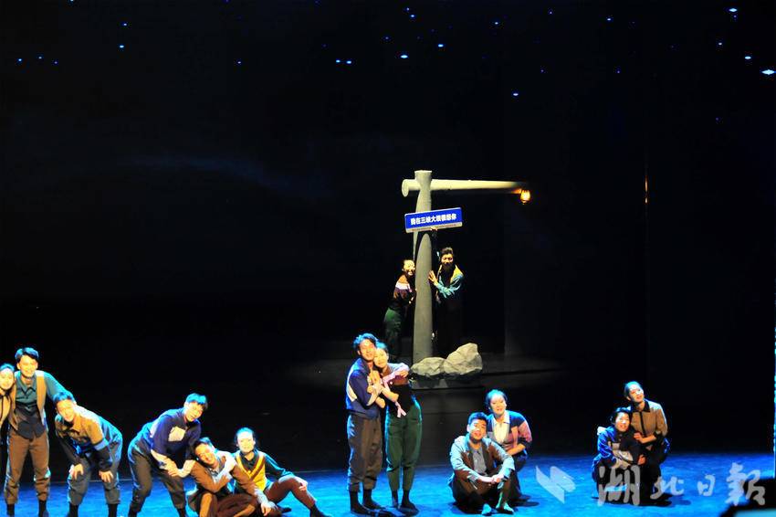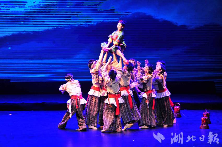 《峡江边的微光》以“光”为魂,巧妙串联起三峡工程的宏大历史与个体命运的细微感动。作品艺术地呈现了三峡建设工地上摇曳的“马灯微光”、百万移民迁徙路上临时安置点的“露营灯火”,以及如今美丽乡村静谧夜晚下的“路灯暖光”。这“三束微光”的流转,成为一部浓缩的峡江发展史诗。舞台上,演员们用充满张力的肢体语言,将峡江畔那些平凡而温暖的瞬间娓娓道来,一束束“微光”汇聚成照亮时代的磅礴力量,引发了观众的强烈共鸣。