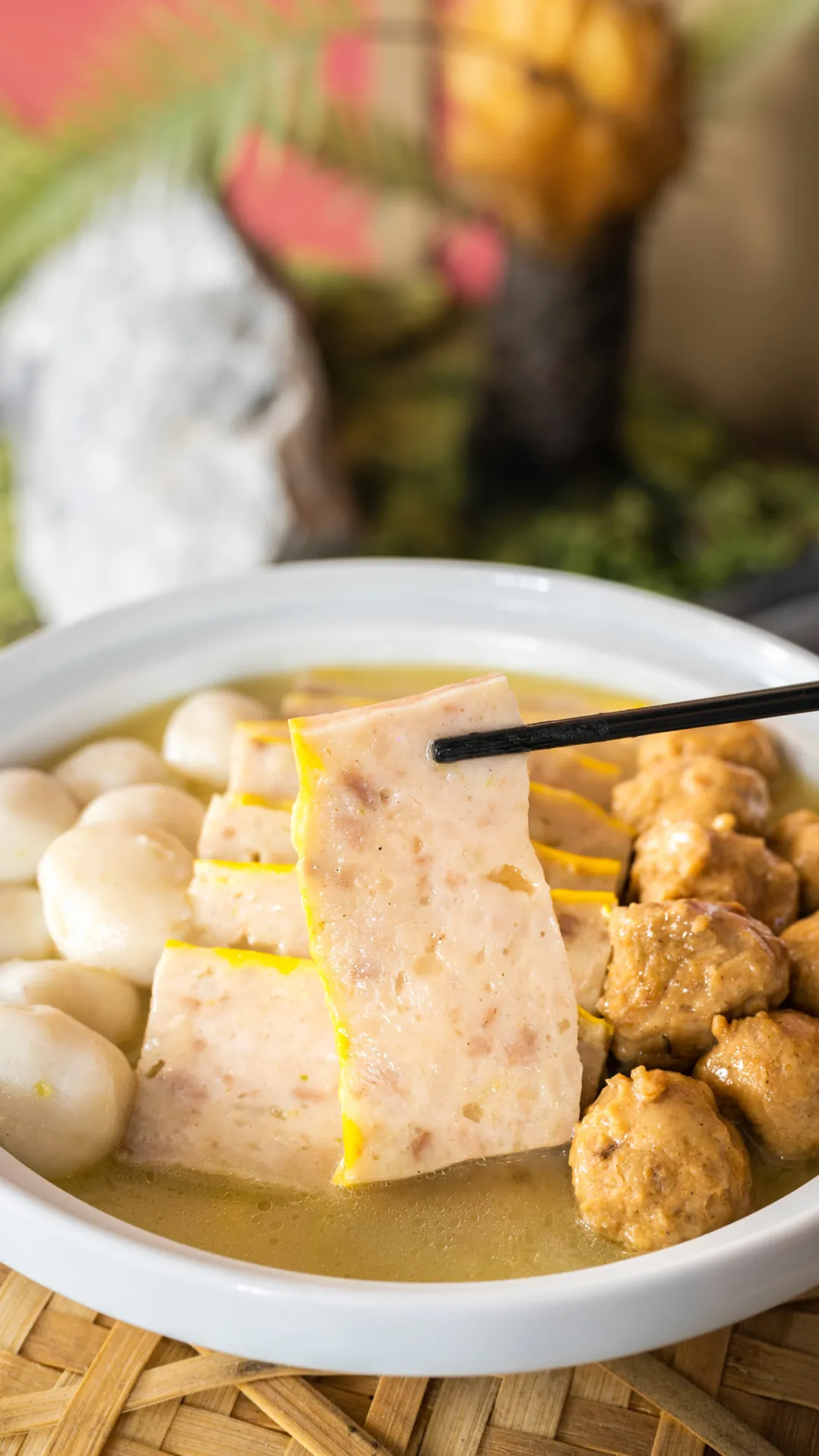 做好的鱼丸光洁如玉,手压成饼、手松还珠;肉丸金黄饱满,掰开后内芯粉红酥松;而刀切成薄片不碎,筷夹闪晃不断,就成为考验肉糕是否合格的关键了。