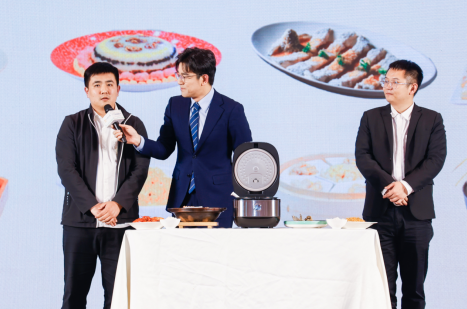 图为珠海格力电器与湖北省粮食行业协会相关负责人联手推介专为江汉大米量身定制的联名电饭煲。
