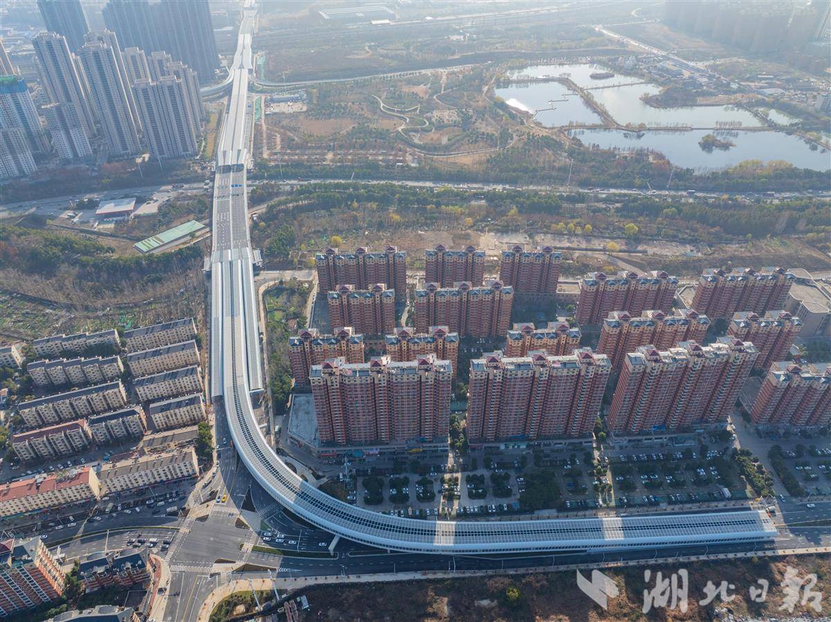 12月28日,航拍武汉古田一路北段跨铁路高架桥。