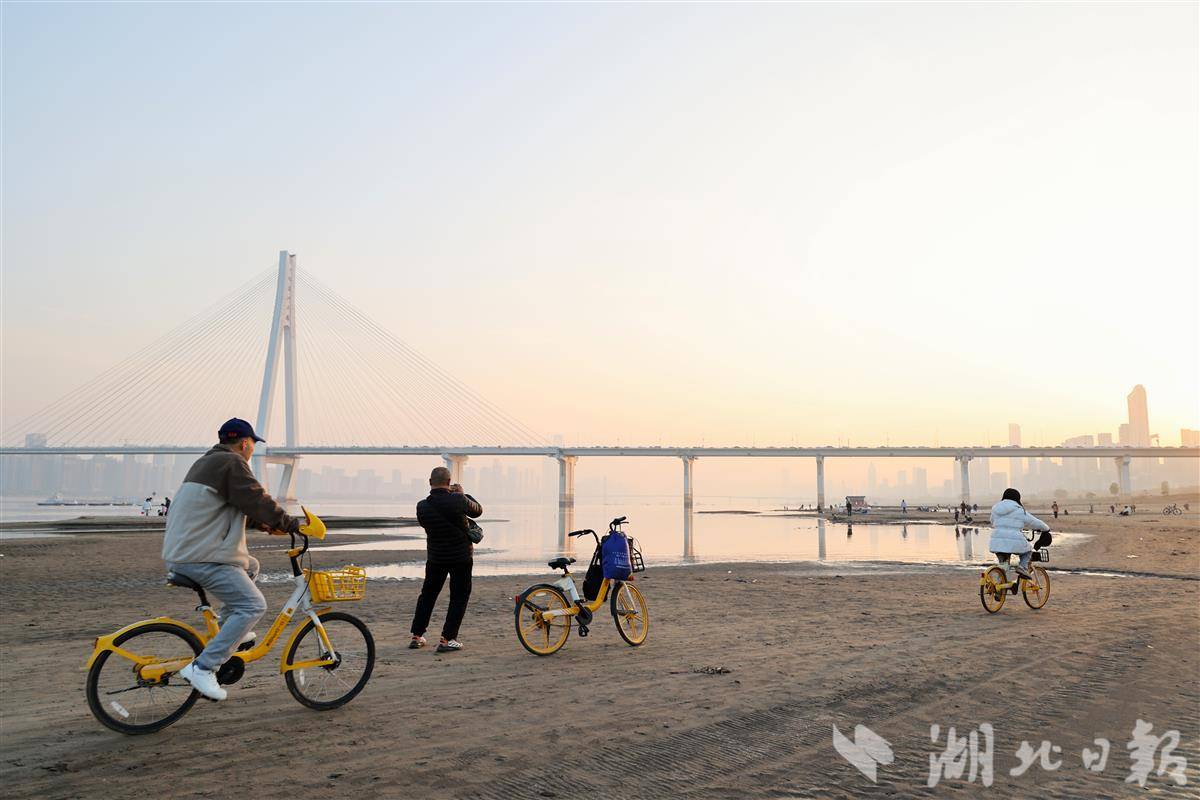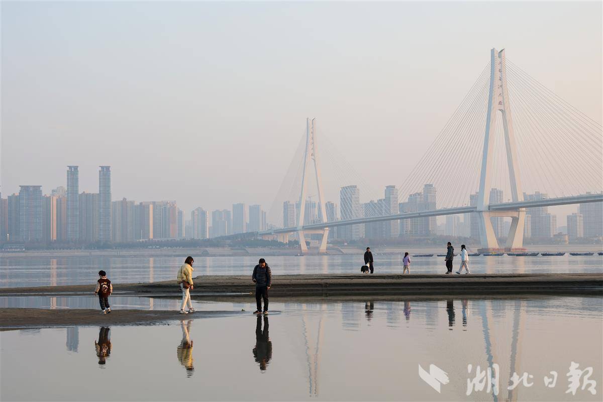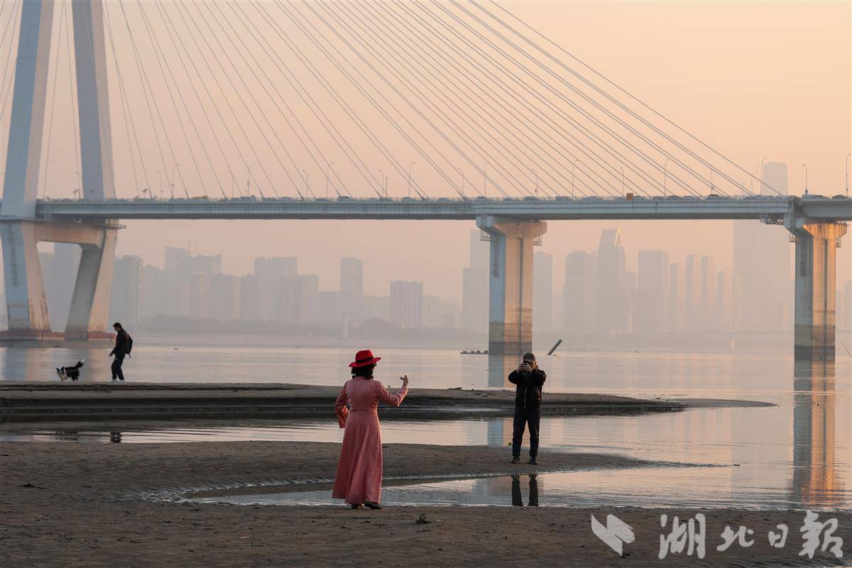 受近期上游来水减少及三峡水库调度影响,长江武汉段水位明显下降,大片沙滩裸露形成独特的季节性景观。12月27日,众多武汉市民趁着冬日暖阳,纷纷来到汉口江滩区域散步、游玩、拍照,构成一幅人与自然和谐共处的生动画面。随着长江大保护战略的持续推进,武汉江滩生态环境不断改善,已成为市民休闲娱乐的重要场所。不论水位高低,长江江滩始终充满着生机与活力,见证着武汉人与母亲河之间深厚的情感纽带。(视界网 肖劲松 摄)