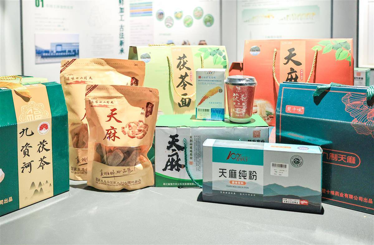 罗田大别山地道药材产业园展示的茯苓、天麻等产品。(湖北日报全媒记者 刘映阳 摄)