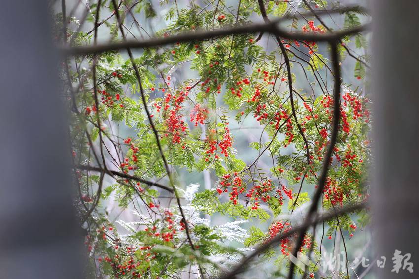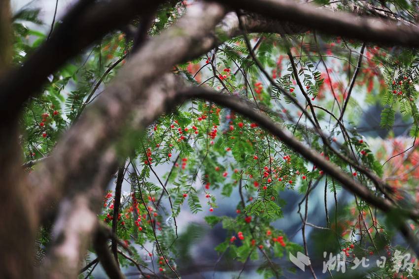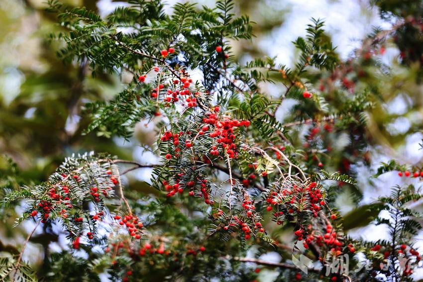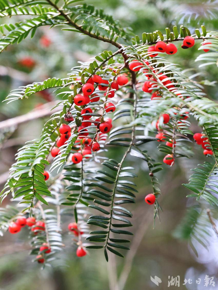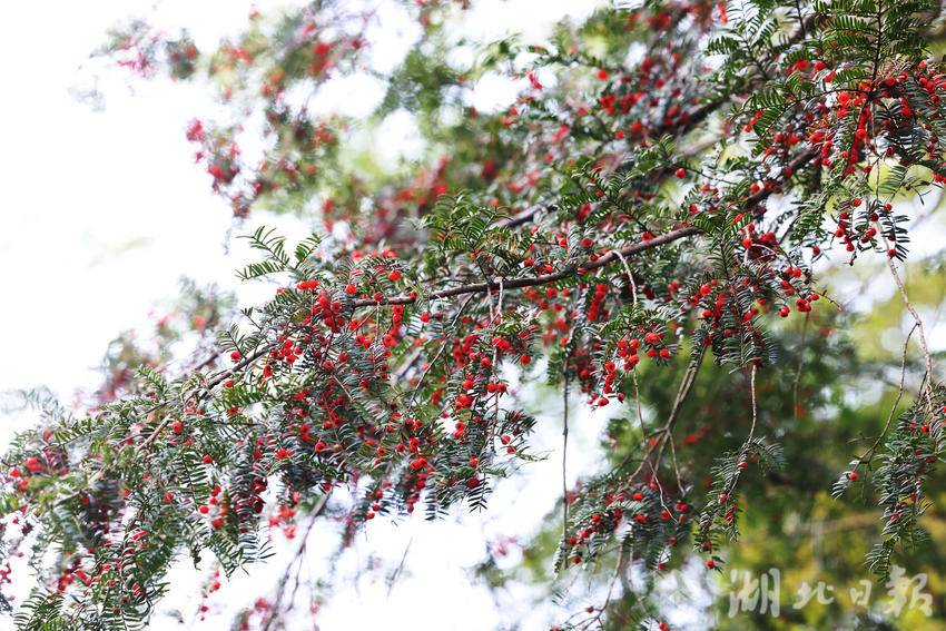 湖北日报讯(通讯员李维君)12月28日,咸丰县黄金洞乡大沙坝村一株挂满果实的红豆杉成为寒冬时节一道亮丽的风景。