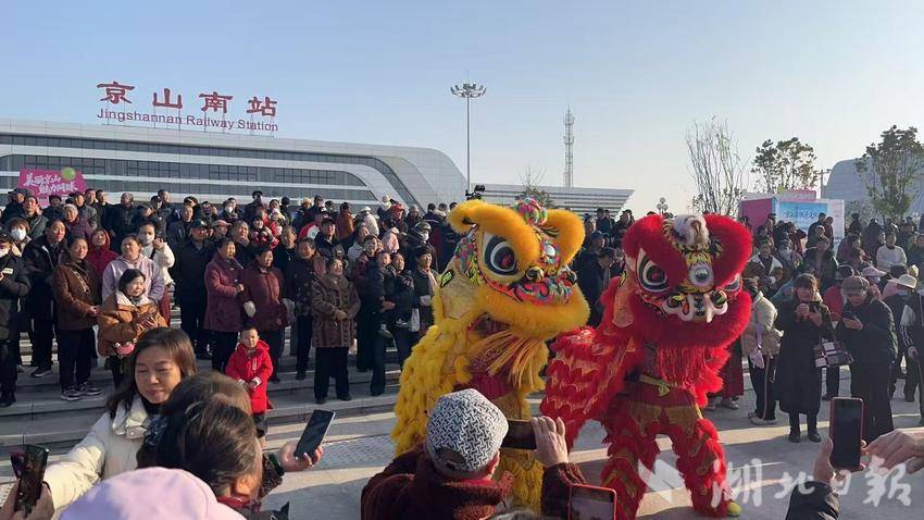 湖北日报客户端讯(通讯员江卫)飞龙醒狮迎高铁,京京闪闪候嘉宾。12月26日是沪渝蓉高铁武宜段正式开通运营的日子,大批城乡群众纷纷乘车前往京山南站,参加开通运营仪式,京山文旅等多部门精心策划,联合推出以“吃住行玩赏乐”为主要内容的文化体验活动,带动现场群众及旅客打卡互动,共同见证这一重大历史喜庆时刻。