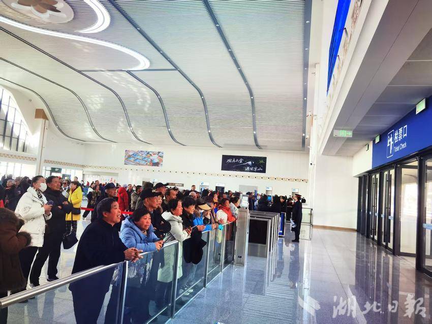 市民静候首趟高铁抵达京山南站的历史时刻