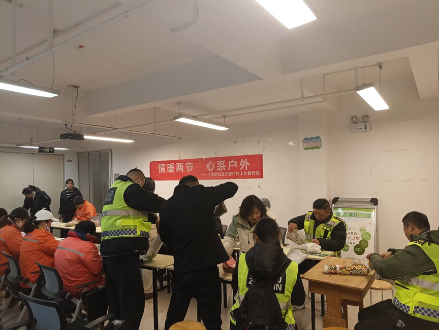 湖北日报讯(通讯员潘一辰)12月26日,武汉市武昌区中南路街道丁字桥社区联合工会携手武汉众成颐家养老服务有限公司,在社区工会驿站开展“情暖两节,心系户外”志愿服务活动,向辖区户外工作者传递关怀与温暖,20余名户外工作者及家属参与活动。