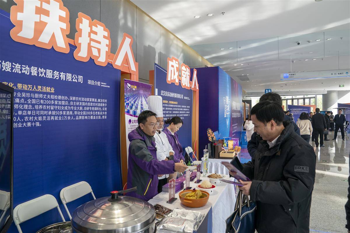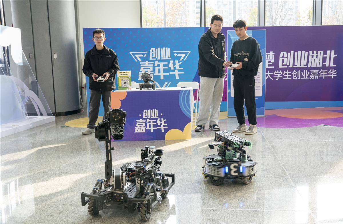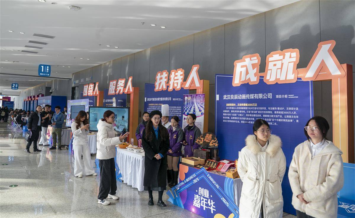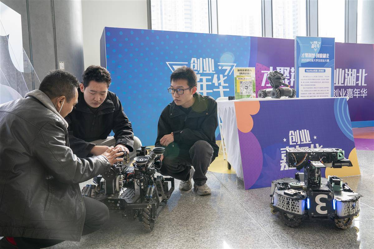 12月29日,2025湖北省大学生创业大赛在湖北广电传媒大厦演播厅举行。从全省1464个创业组项目中脱颖而出的10位选手进入决赛路演环节,经过突围赛、复活赛、巅峰赛三轮角逐,来自覆兴科技的张嘉翊获得冠军。在决赛场外,“大学生创业嘉年华”活动通过文字图片、产品展品实物展示、多媒体呈现等方式,集中展示湖北省大学生创业联盟推荐的优秀创业项目,帮助创业项目解决政策、融资、运营等难题。(湖北日报全媒记者 魏铼 摄)