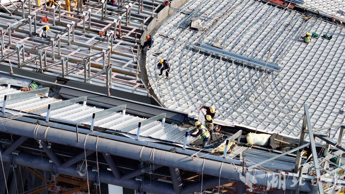 近日,位于武汉王家墩中央商务区核心地段的武汉图书馆新馆项目建设正酣。该项目总建筑面积14.23万平方米,建成后将成为武汉新的城市文化地标,更将以其庞大体量和现代设计,为市民打造一座集知识获取、文化交流、休闲体验于一体的城市文化客厅,有力提升武汉的文化软实力与城市形象。(湖北日报全媒记者 陈少哲 摄)