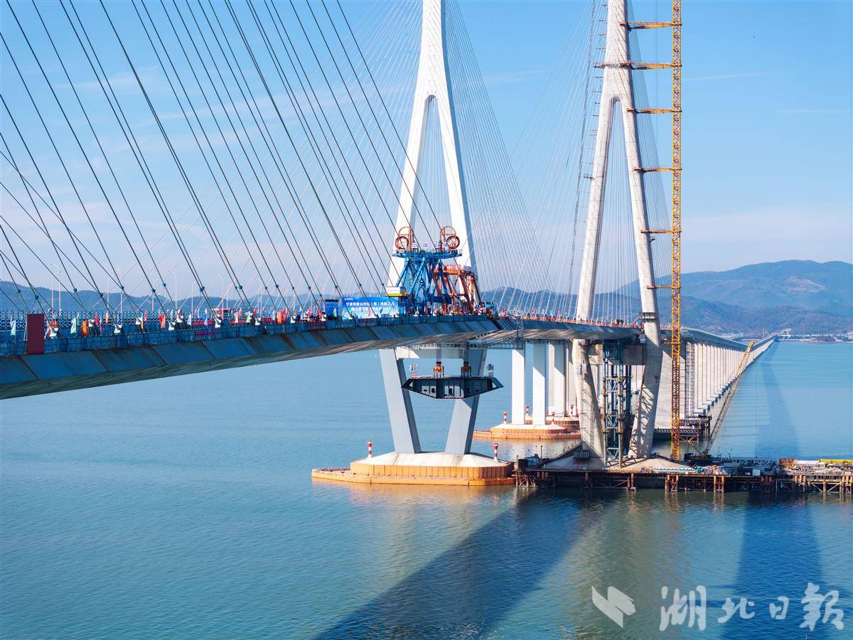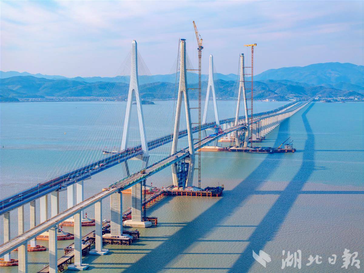 湖北日报讯 (记者戴辉、通讯员张世梁、王一凡、赵振宇)12月29日,随着最后一节钢箱梁精准吊装就位,由宁波轨道交通集团有限公司建设,中交二航局参建的国内首座市域(郊)铁路跨海大桥——宁波市域铁路象山港跨海大桥顺利合龙,为后续全桥铺轨和通车运营奠定了坚实基础。