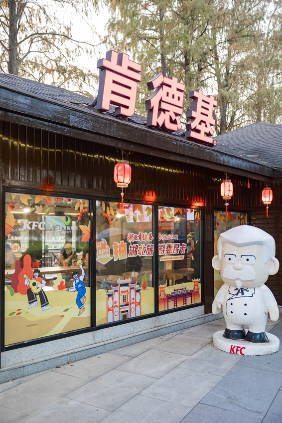 协议签订时,恰逢肯德基进入湖北三十周年,双方围绕该主题进行了一系列面向消费者的活动,其一,面向肯德基APP会员推出三十周年感恩抽奖活动,由湖北文旅提供惠民卡及惠民卡代金券作为奖品,既回馈长期支持品牌的消费者,也为湖北文旅吸引更多年轻客群,助力其拓展年轻化消费场景,其二,打造“肯德基湖北三十周年”主题店,结合湖北省的文化旅游资源进行场景化包装,营造兼具餐饮功能与文化打卡属性的消费空间。据了解,未来,双方将加深合作,联合开发荆楚文化旅游文创产品,将恩施大峡谷、清江画廊等景区IP打造成年轻人喜爱的文创产品,让湖北美景在肯德基餐厅触手可得。