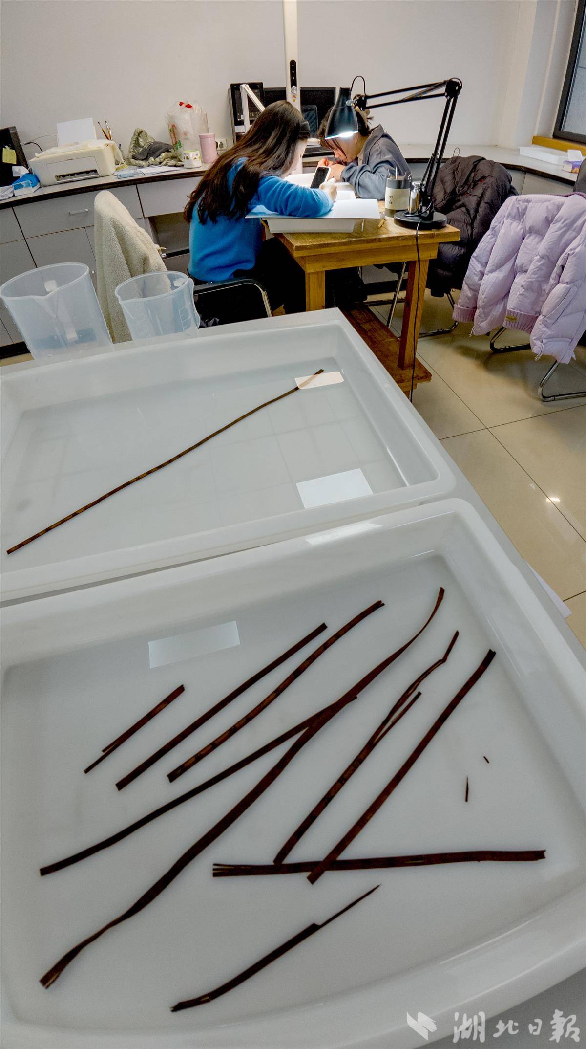 荆州文物保护中心“荆州简”修复现场。