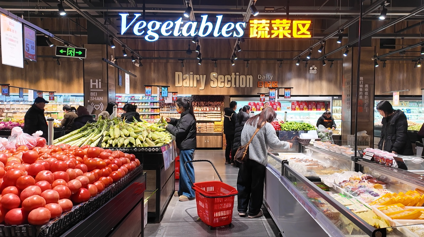 临近元旦与春节,枝江各大商超也已提前备足货源,确保节日市场货丰、价稳、量足。北山超市加大了采购力度,重点商品库存较平时增加了3至5倍。“生鲜肉禽、时令水果、粮油米面等民生商品货源充足、价格稳定,能满足市民节日采购需求。”北山超市枝江商业大楼店工作人员王俊玲介绍。超市还通过增派人手、增设收银通道、推出“一分购”、满减、折扣等促销活动,优化购物体验,进一步激发消费热情。