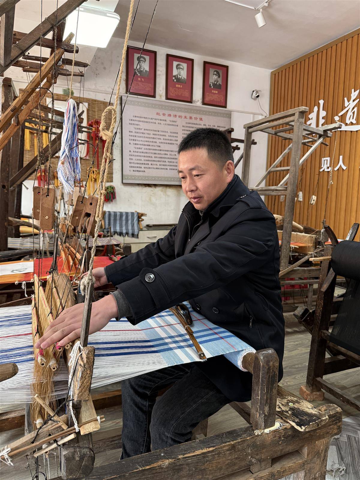 “或许因为机械专业的底子,我熟悉织机结构,上手特别快,一个月就成了熟手。”渐渐地,游客慕名来看他织布、拍视频,合作邀约也多了起来。“我从无人问津的‘织男’,变成了红安大布的‘代言人’。”