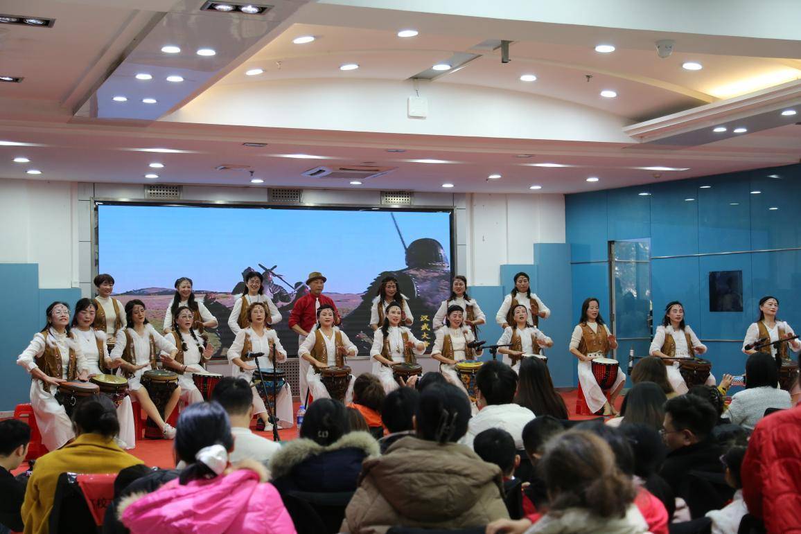 汇演在气势恢宏的非洲鼓表演《战马》中拉开帷幕,鼓声铿锵有力,节奏激昂澎湃,将现场气氛瞬间点燃。随后,涵盖合唱、舞蹈、情景朗诵、乐器演奏、模特步、太极等多种形式的表演令大家大饱眼福。其中,来自五环青衿艺术团口才班24名小朋友带来的情景朗诵《年味》,说词节奏连贯,声音悦耳动听,吉祥语充满生活气息,表演内容与他们大红衣服、红灯笼等道具、天真可爱的笑脸相融合,年味十足,给观众满满的喜庆。