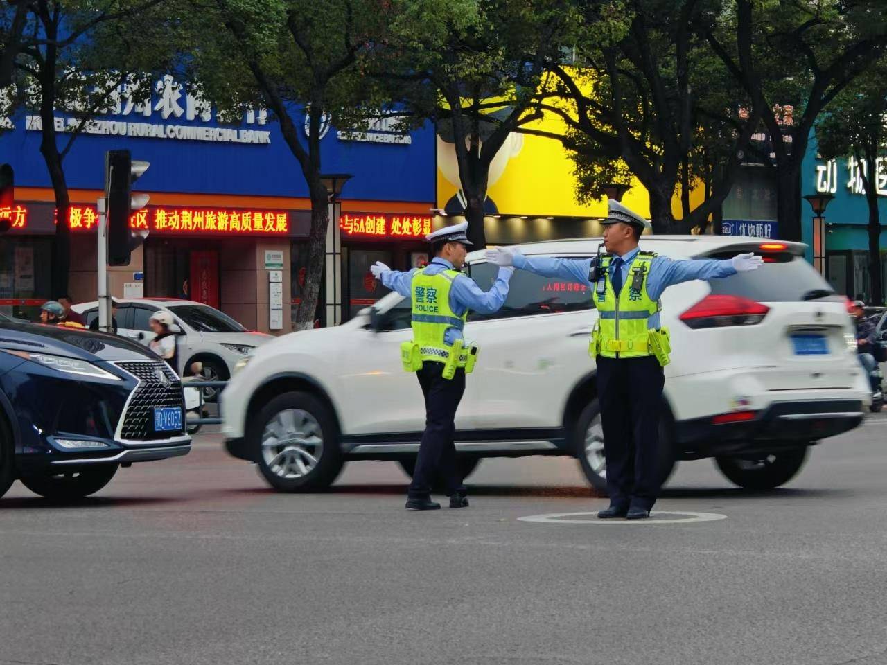 清晨的薄雾中,荆州中心城区东门路口已是一片繁忙。执勤民警身姿挺拔,展臂、转身——指挥动作干净利落,一声声清亮的哨音划破晨雾,汇入滚滚车流。
