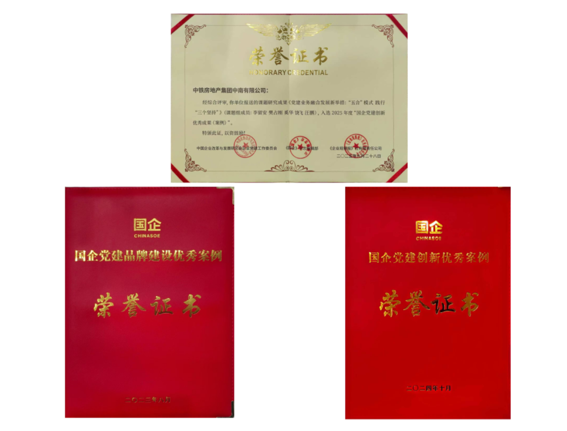 湖北日报讯(通讯员汪鹏、李永高)近日获悉,2025年,中铁房地产集团中南有限公司《党建业务融合发展新举措:“五合”模式践行“三个坚持”》入选2025年度“国企党建创新优秀成果(案例)”,并在《国企》杂志上发布。《“四融”“五合”模式推动思想政治工作融入生产经营》成功入选中国铁建2025年基层思想政治工作创新案例。