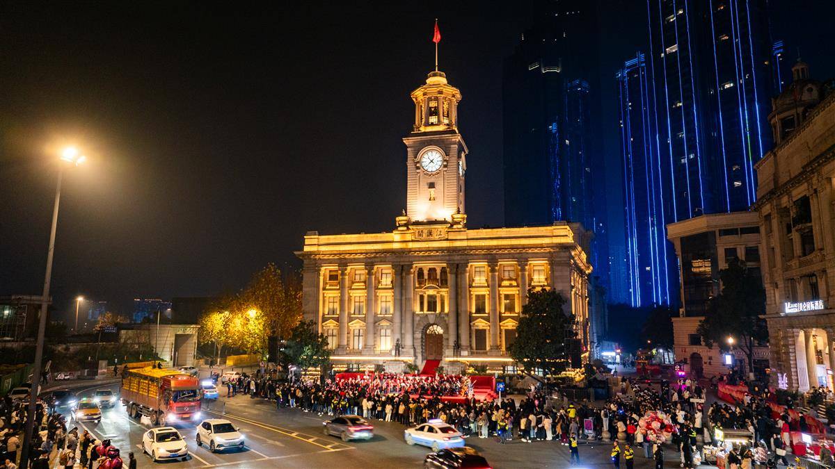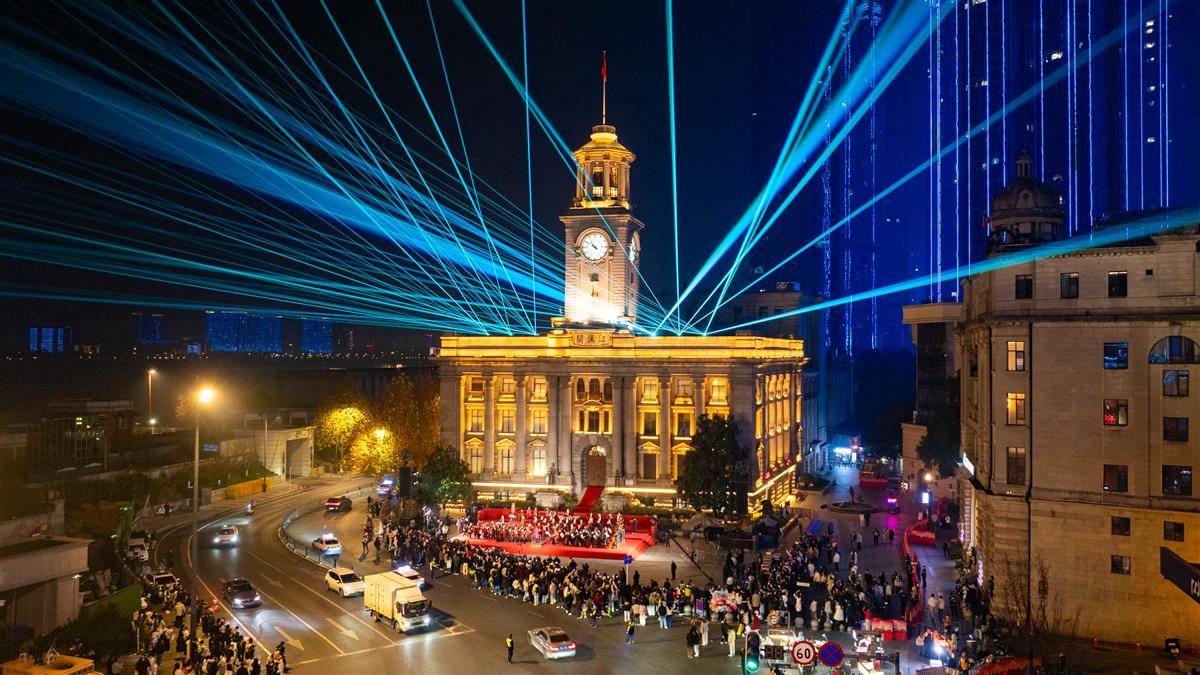 2025年12月30日晚,“你好,2026”江汉关跨年光影秀彩排现场热闹非凡,吸引大批市民游客前来围观。2025年12月31日跨年夜当晚,武汉地标建筑——江汉关大楼将开展主题音乐激光秀表演,同时融入“新年交响乐”“跨年倒计时”“新年钟声”等场景环节,为世界各地的游客献上浪漫的跨年盛典!(湖北日报全媒记者 何宇欣 摄)