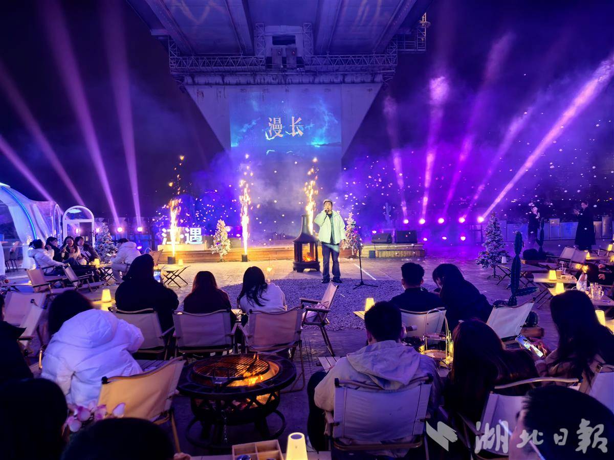 与室内精致演艺相映成趣的,是户外的热烈狂欢。在江遇桥墩营地,一场集合了民族乐器表演、跨年音乐会、篝火互动、跳舞、趣味游戏和万众期待的跨年倒计时等多元活动的户外派对,早已点燃了年轻人的热情。