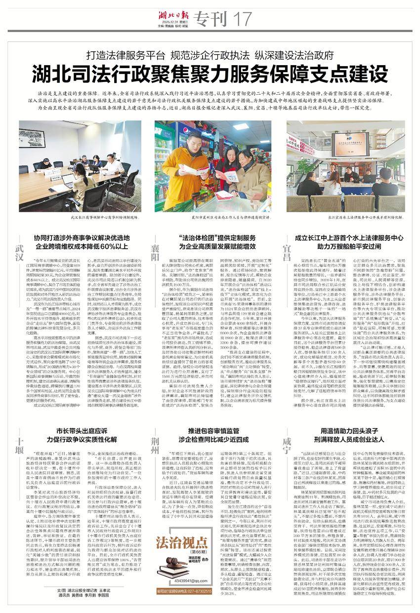为全面呈现全省司法行政队伍服务保障支点建设的昂扬斗志,近日,湖北日报全媒记者深入武汉、襄阳、宜昌、十堰等地基层司法行政单位走访,带您一探究竟。
