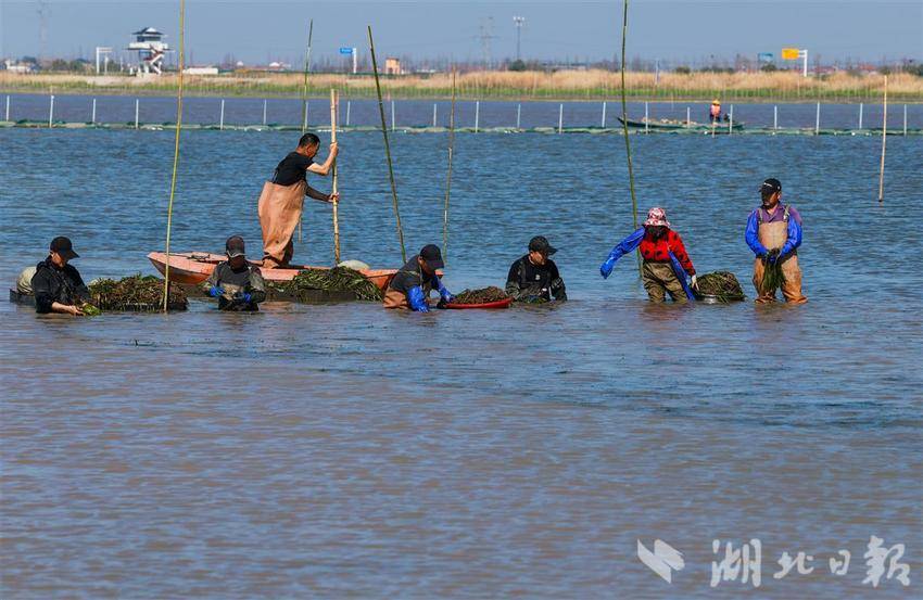 2025年3月19日,中建三局技术人员在护理洪湖修复试验区水草。