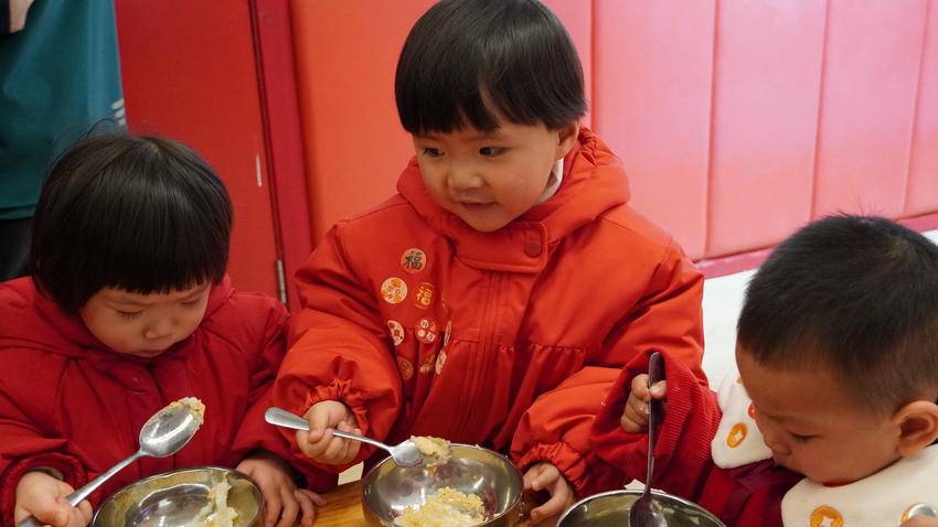 “我今天吃了糍粑,很好吃哟。”向西熙小朋友跳着说。
