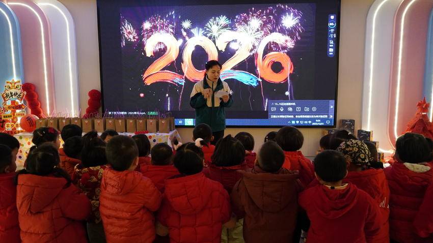 活动在生动的“元旦小课堂”中拉开序幕。老师播放《元旦由来》《年兽的故事》动画视频,用童趣的语言讲解元旦起源与年俗知识,还通过互动提问引导孩子们积极发言。