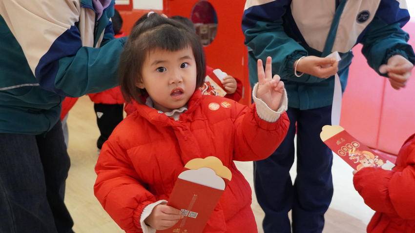 “我今天认识了年兽,它害怕鞭炮。”范绪浠小朋友说道。