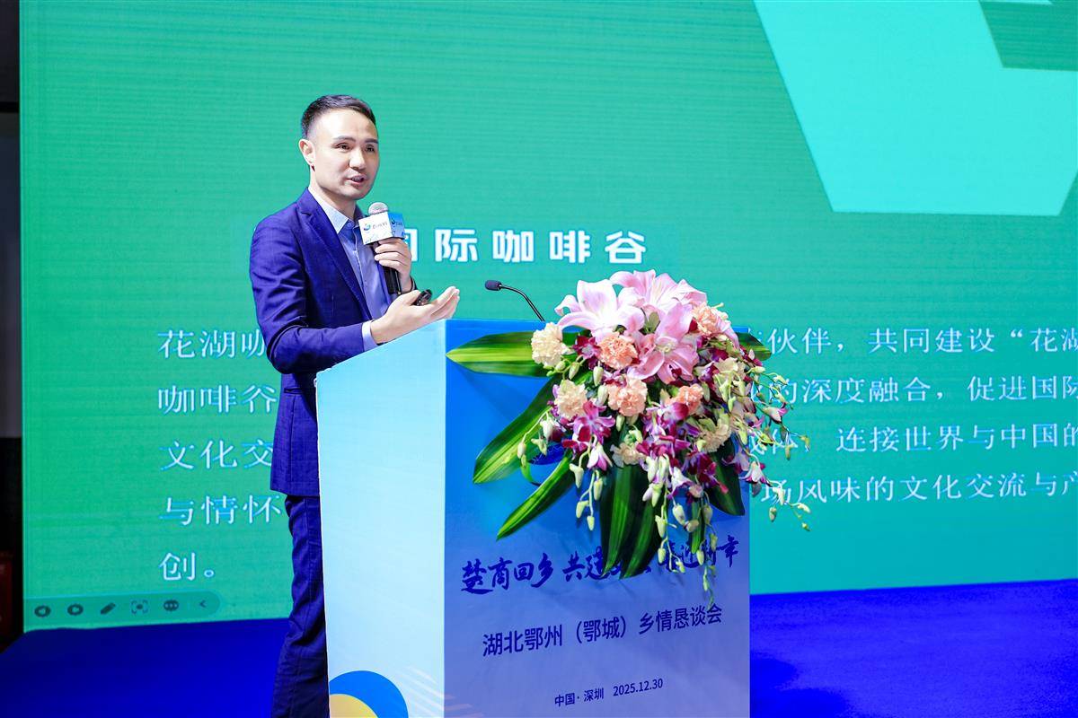 12月28日,“花湖咖啡”联合创始人曹雷波在鄂州推介。湖北日报全媒记者周鹏摄