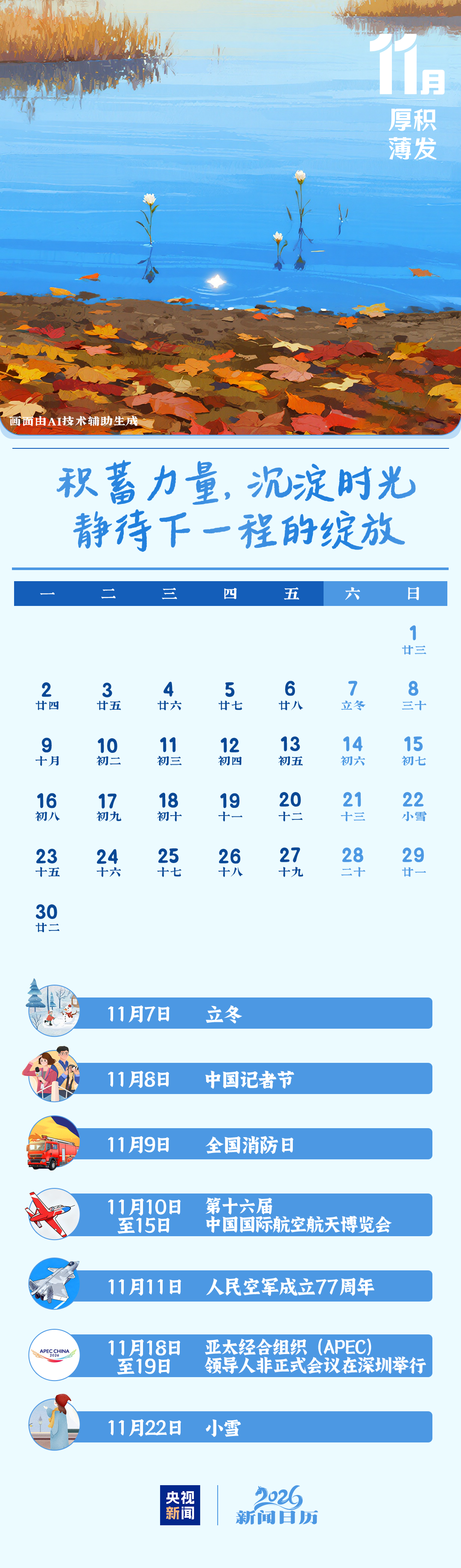 今年,新中国成立77周年、庆祝建党105周年,一起祝福祖国繁荣昌盛!冬奥会、亚运会,为中国运动健儿加油。收好这份2026新闻日历,愿我们赤诚勇敢,把生活过成自己喜欢的样子。
